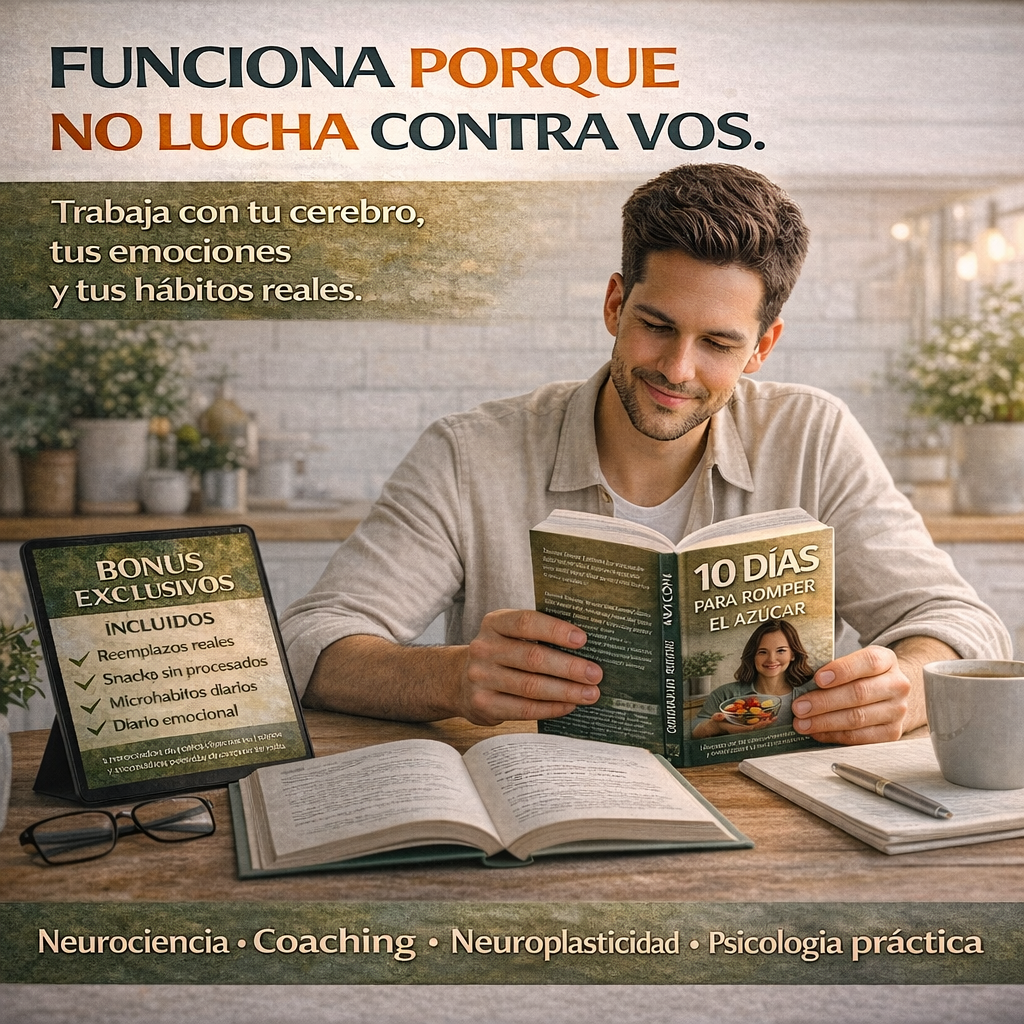 Tu cerebro se puede reprogramar. El libro usa principios básicos de neurociencia y neuroplasticidad explicados en lenguaje simple, para que entiendas por qué hoy el azúcar te domina y cómo crear nuevos caminos en tu mente.